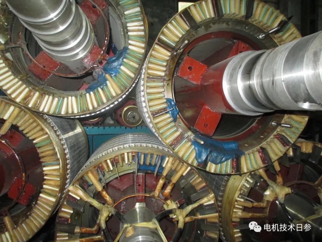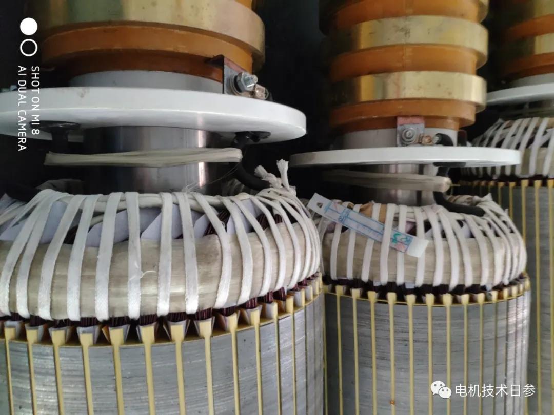 對(duì)于轉(zhuǎn)子部分,如果條件允許,建議使用模壓繞組。一方面可以提高繞組的機(jī)械強(qiáng)度;另一方面,轉(zhuǎn)子的成型繞組相當(dāng)于風(fēng)壓元件,可以在一定程度上改善繞組的通風(fēng)散熱。必須加強(qiáng)轉(zhuǎn)子軟繞組端部的徑向固定,以防止端部向內(nèi)或向外變形導(dǎo)致電氣或機(jī)械故障。
